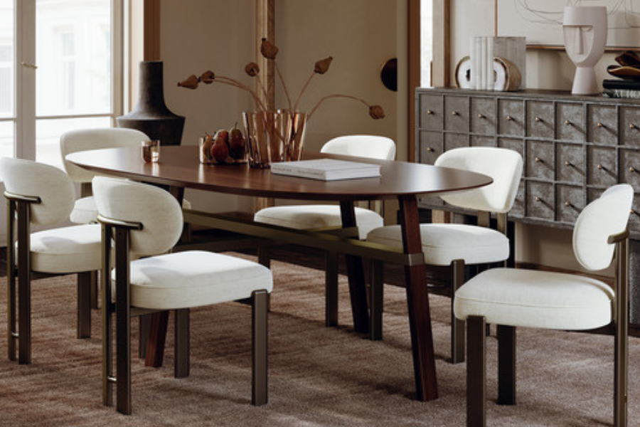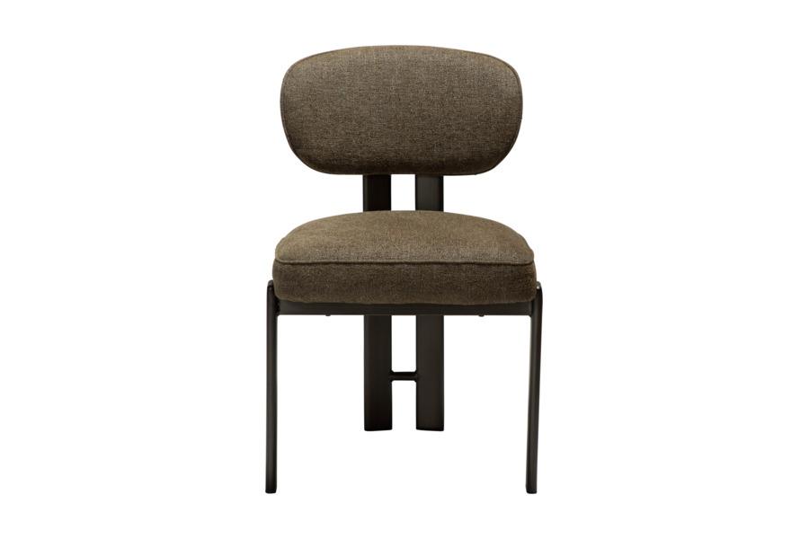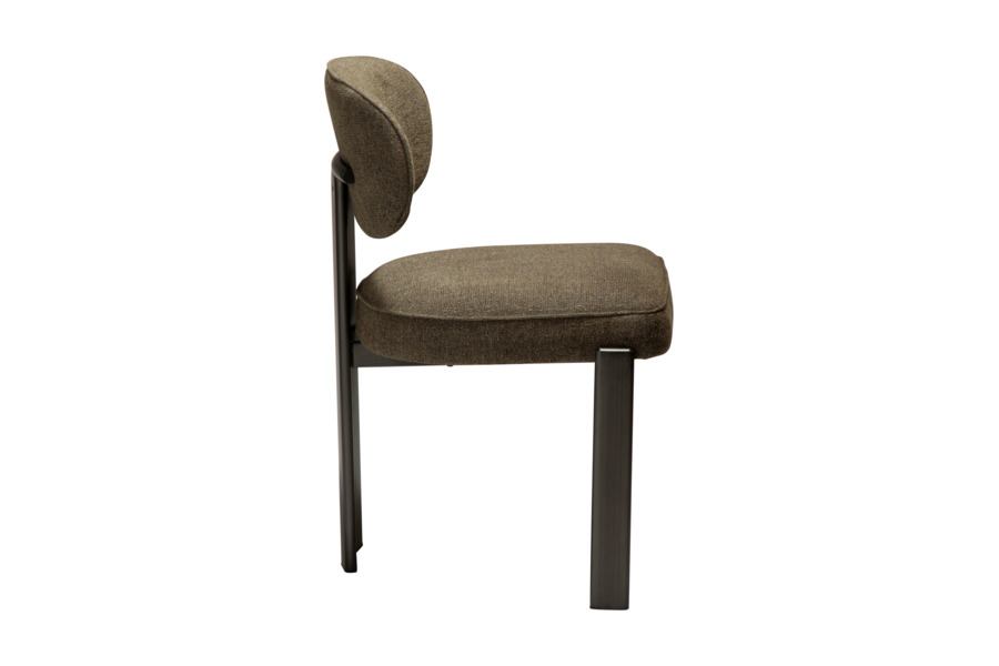 The Duct dining chair Dark Olive combines architectural design with rich texture and comfort. Its defining feature is the closely positioned parallel back legs, creating a strong and structured visual identity.