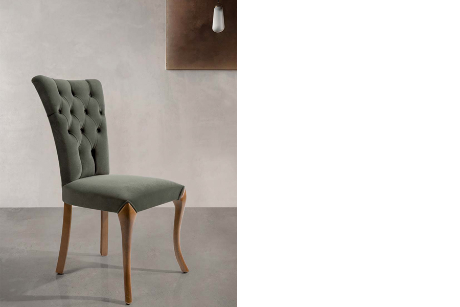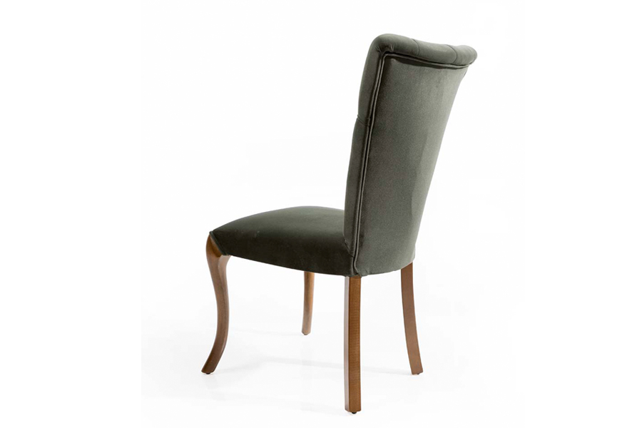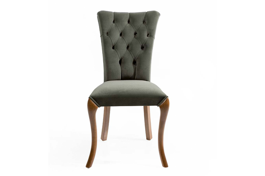 The Art dining chair embodies classic design with modern touches. Its tufted backrest adds a touch of luxury and timeless elegance to your space. The seat is exceptionally comfortable, featuring soft upholstery, perfect for extended gatherings around the dining table. Crafted from high-quality solid wood, with elegantly curved legs that provide both stability and sophistication. Available in a variety of fabric and wood finishes to suit your personal taste and the ambiance of your dining area.