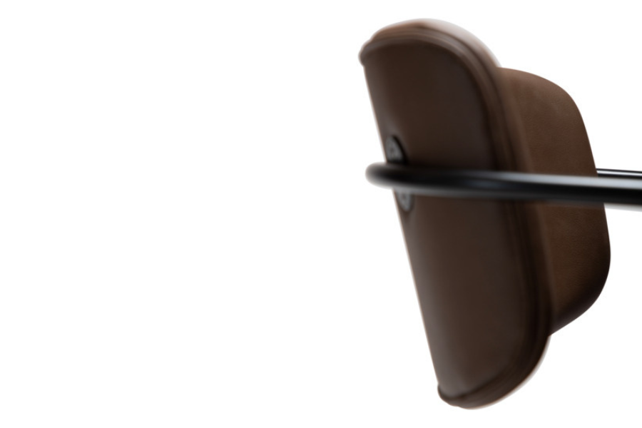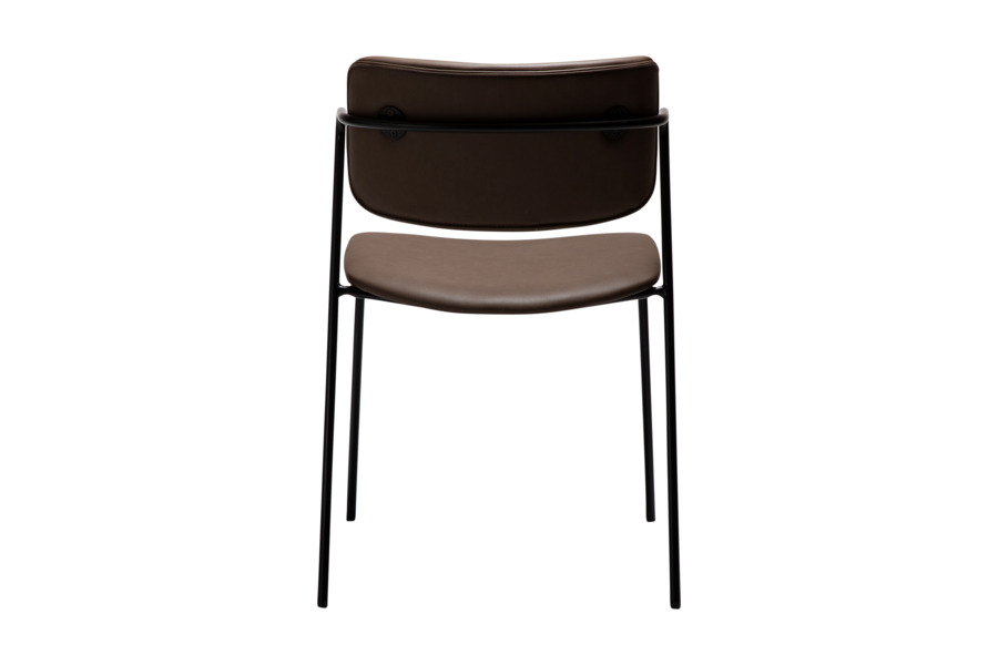 The black metal frame provides stability and strength, while the slim legs maintain a light visual presence and reinforce the chair’s minimal aesthetic.