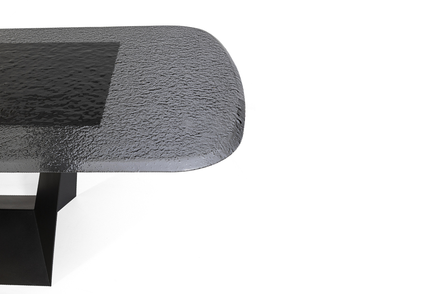The tabletop is crafted from high-performance glass material, featuring a distinctive texture and premium finish. It offers exceptional resistance to heat, scratches, and everyday wear, making it ideal for daily use.