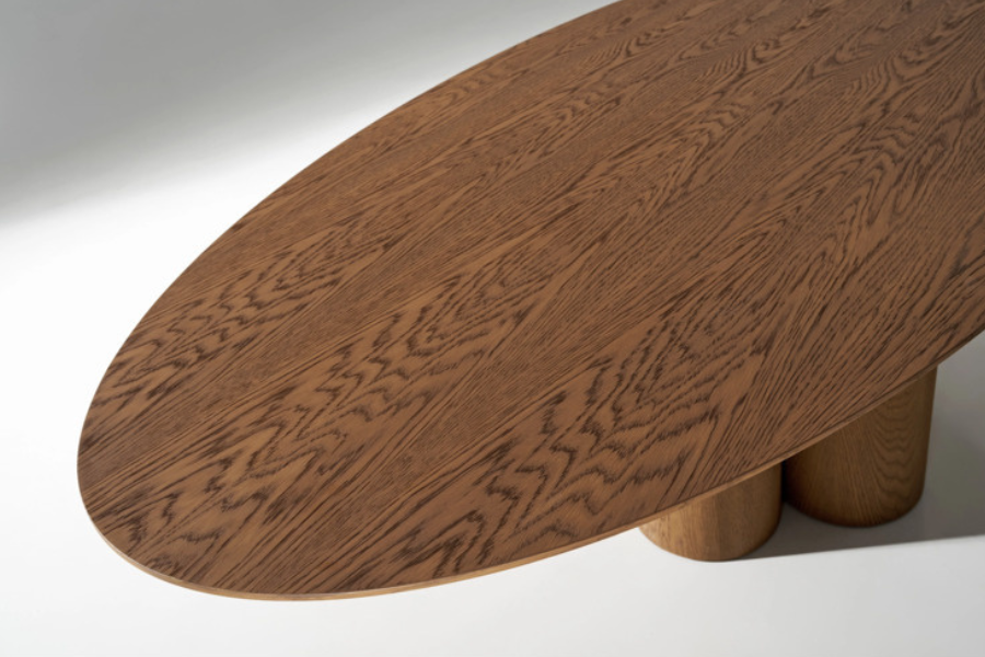 The oval tabletop introduces soft lines and a harmonious flow, creating a welcoming atmosphere for everyday use and gatherings. The natural wood texture enhances the sense of warmth and sophistication.