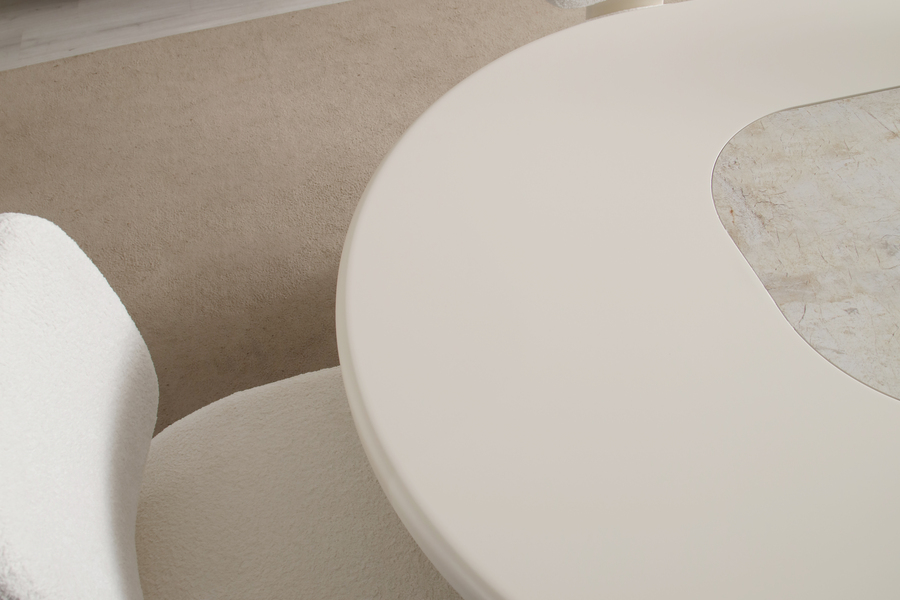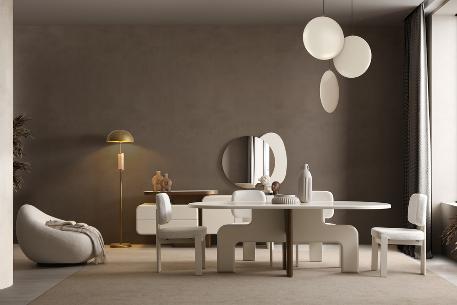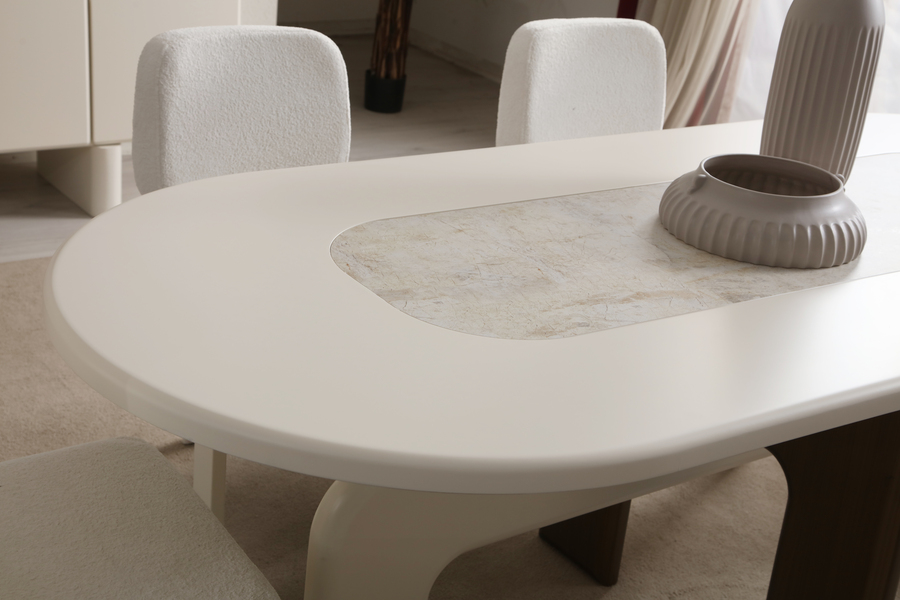 Molivo Dining Table stands out with its distinctive organic design, creating a modern and elegant presence in the dining area. Its soft curves and balanced lines give it a unique aesthetic identity.