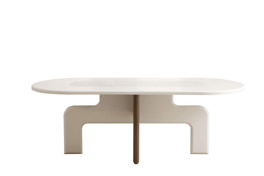 The neutral-toned surface enhances brightness, while the uniquely designed base ensures stability and comfort in use. Its structure allows easy placement of chairs, making it ideal for everyday dining and hosting.