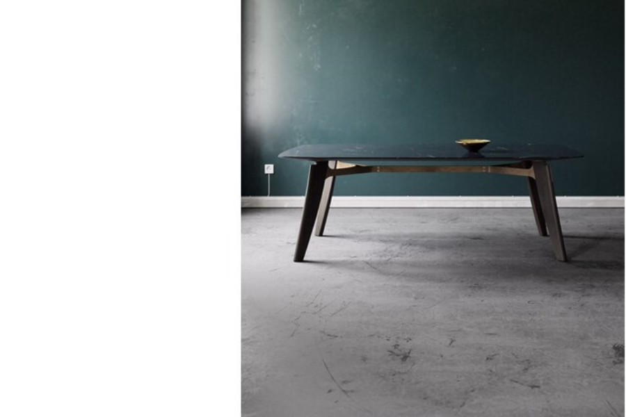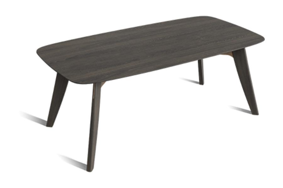 The soft curves of the tabletop create a welcoming atmosphere, while the slender angled legs add a sense of lightness and modern appeal.