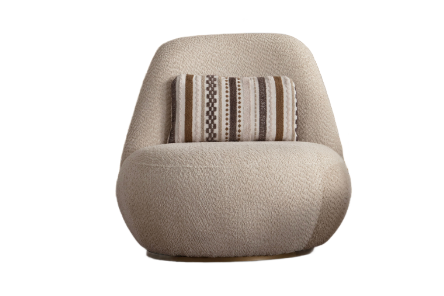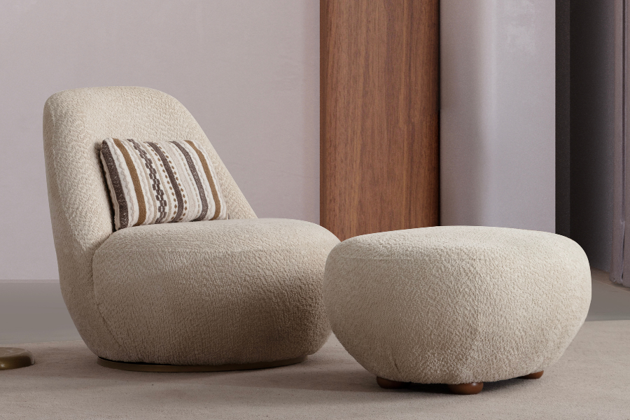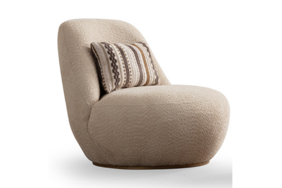 Its design is based on soft curves and balanced proportions, creating a welcoming relaxation spot within the space.