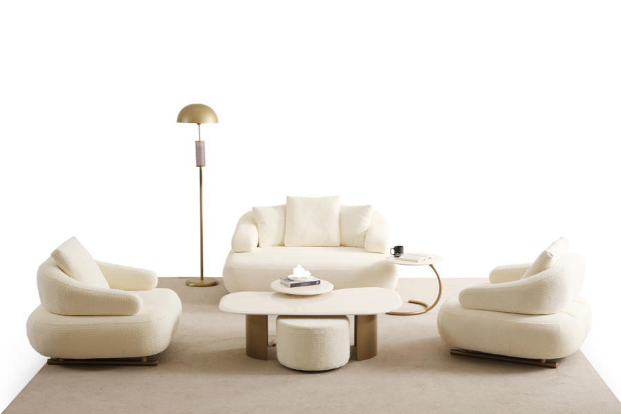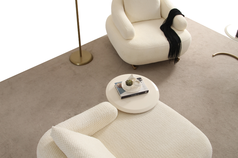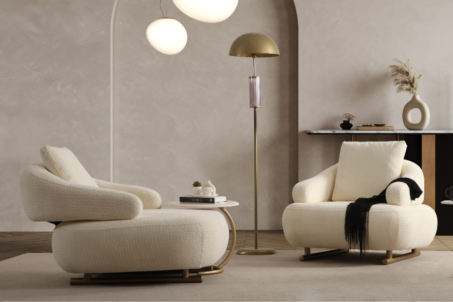 The Prada stands out for its modern design and soft curved lines, offering comfort and aesthetic balance within the space.
