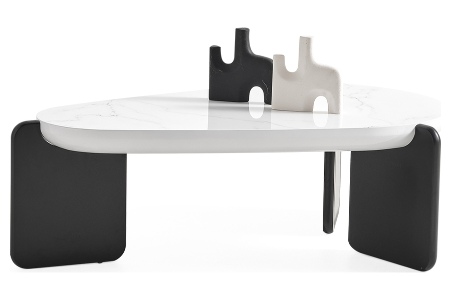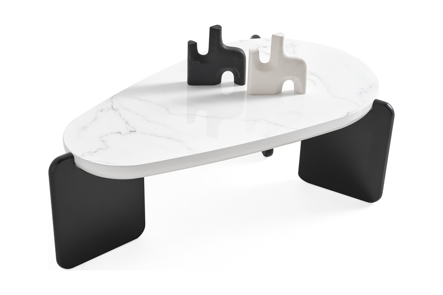 The tabletop is made of high-quality ceramic with a marble-effect finish, offering excellent resistance to heat, scratches and everyday wear. The base is crafted from metal with a matte finish, ensuring stability and durability.