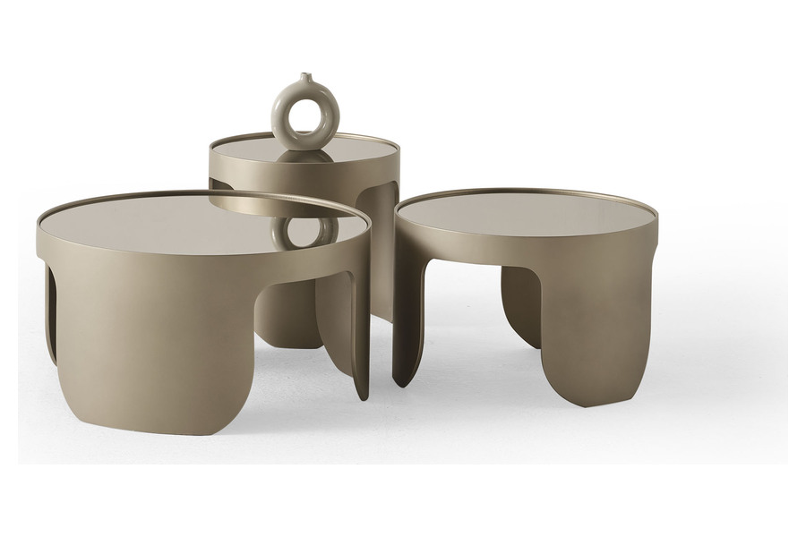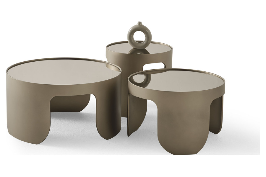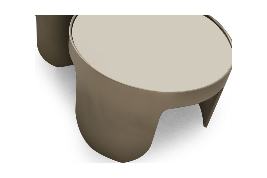 Its metal construction combined with a glass top creates a harmonious result, offering durability, functionality, and refined aesthetics. The curved lines and rounded design add softness to the space, making the set ideal for modern as well as minimal living rooms.Dimensions