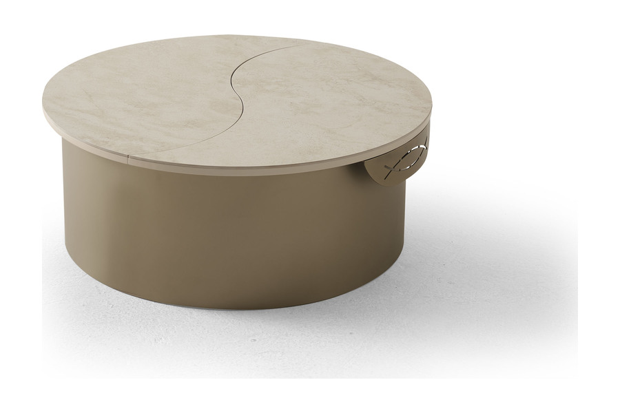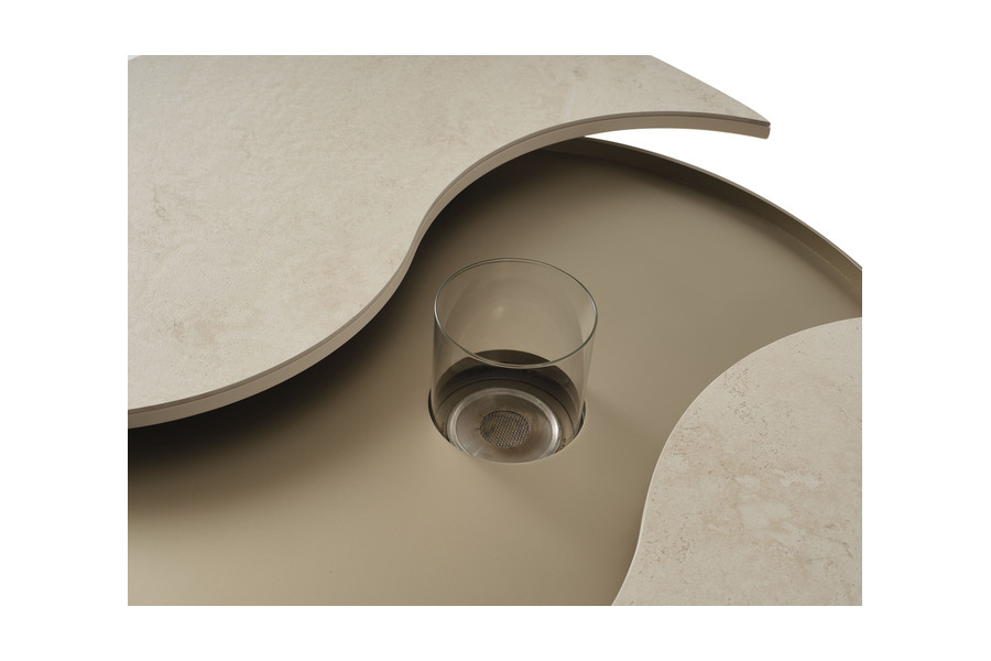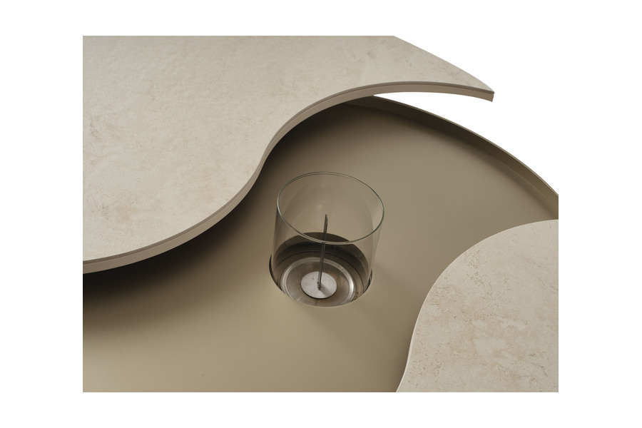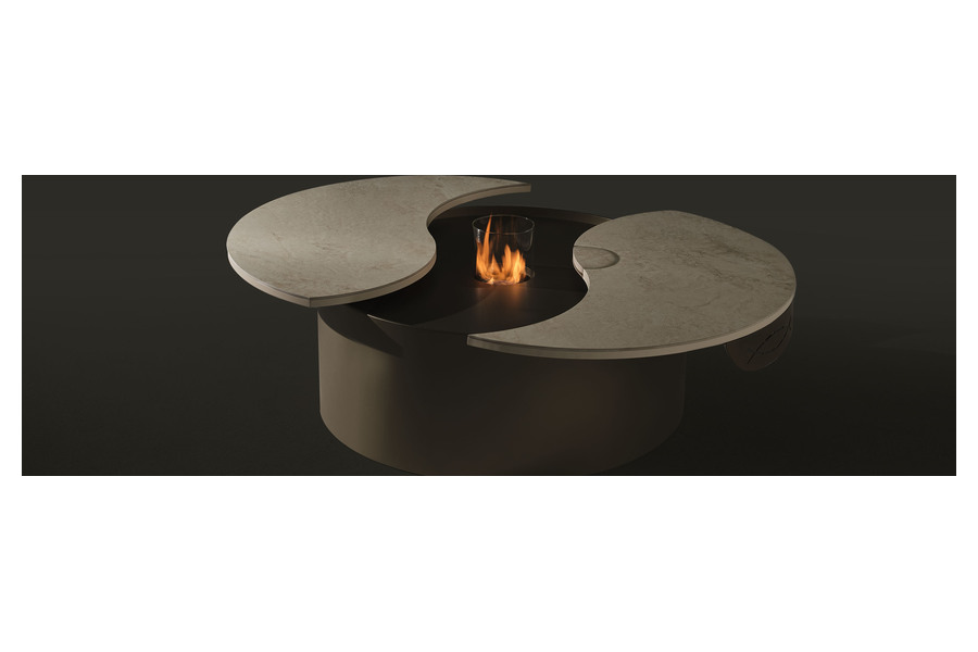 The Coffee Table No 1101 is a striking design piece that combines innovation, functionality, and contemporary aesthetics. Its circular form with organically curved, sliding tabletop elements creates a unique visual identity, while the integrated bioethanol burner adds a warm, atmospheric flame without smoke or odors.