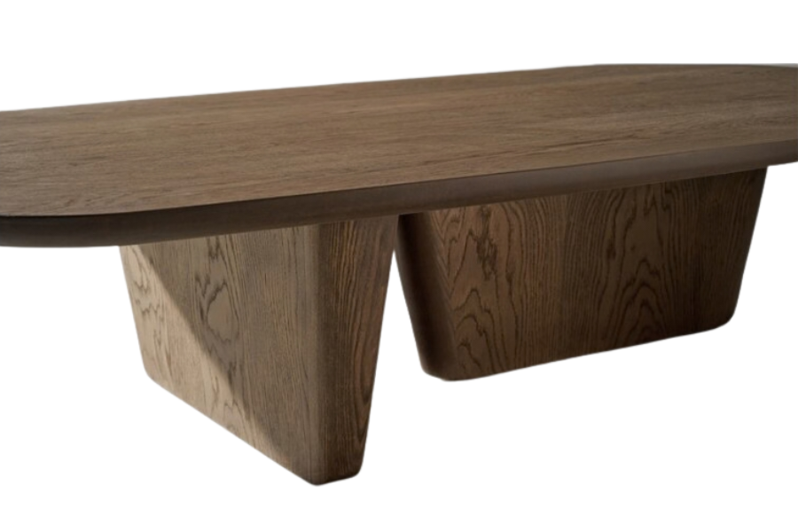 The distinctive sculptural base enhances the table’s design while ensuring excellent stability. The combination of clean lines and natural materials creates a sophisticated piece suitable for modern living rooms.