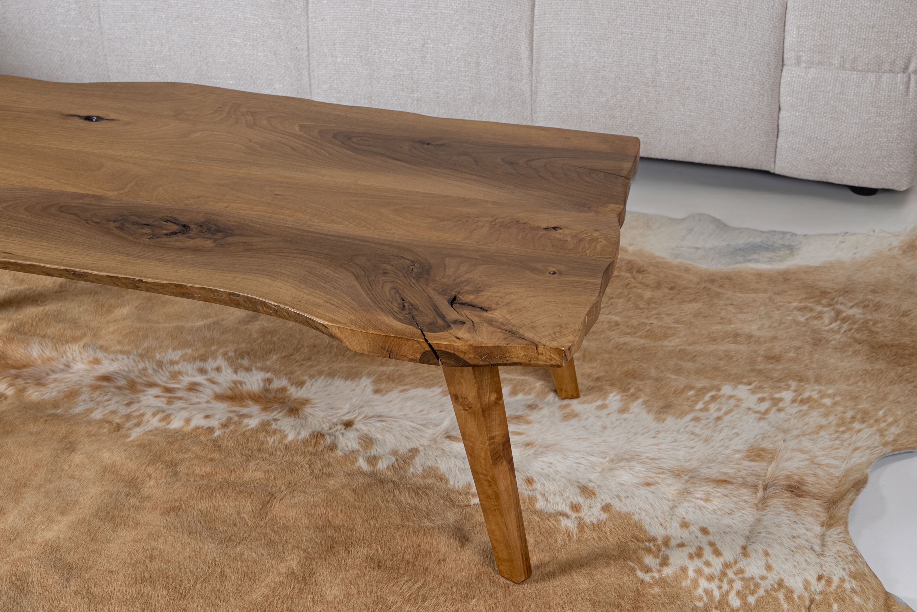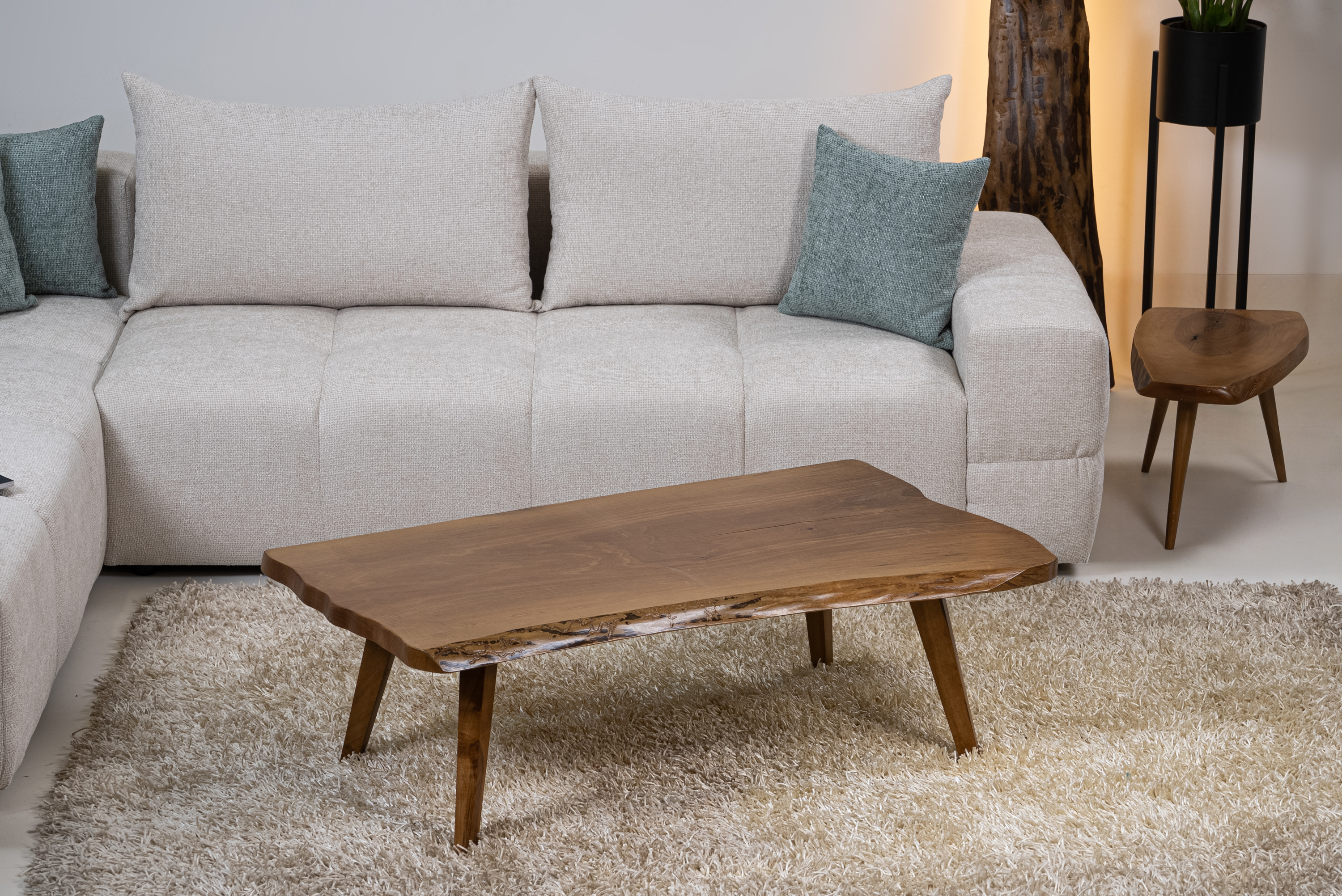 The Masif Walnut 03 coffee table is crafted from premium solid walnut wood, preserving the natural form and unique grain of the tree. Each piece is one of a kind, featuring organic curves, knots, and natural imperfections that highlight the authenticity of the material. The surface is treated with eco-friendly oils and finishes for durability and a smooth tactile feel.