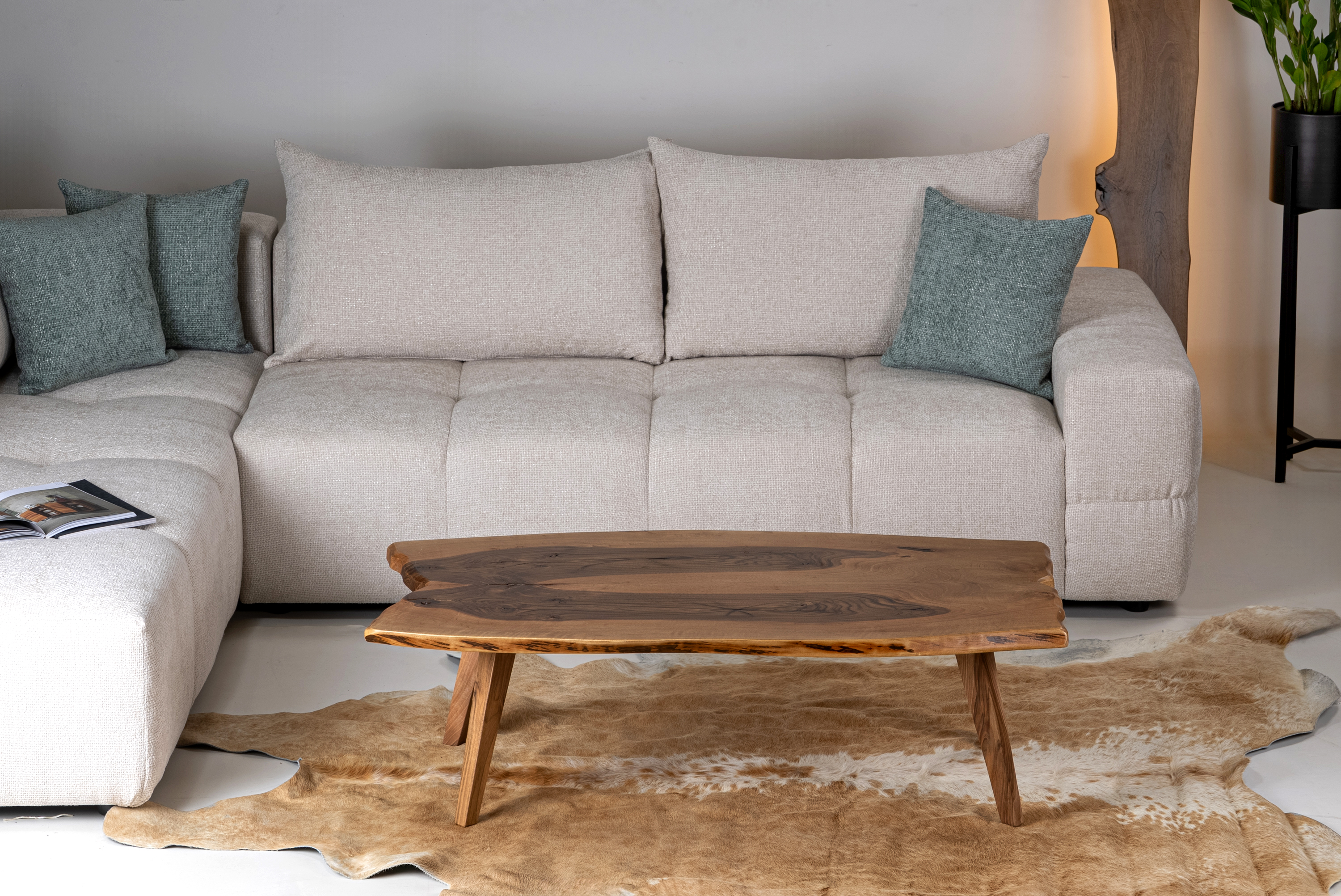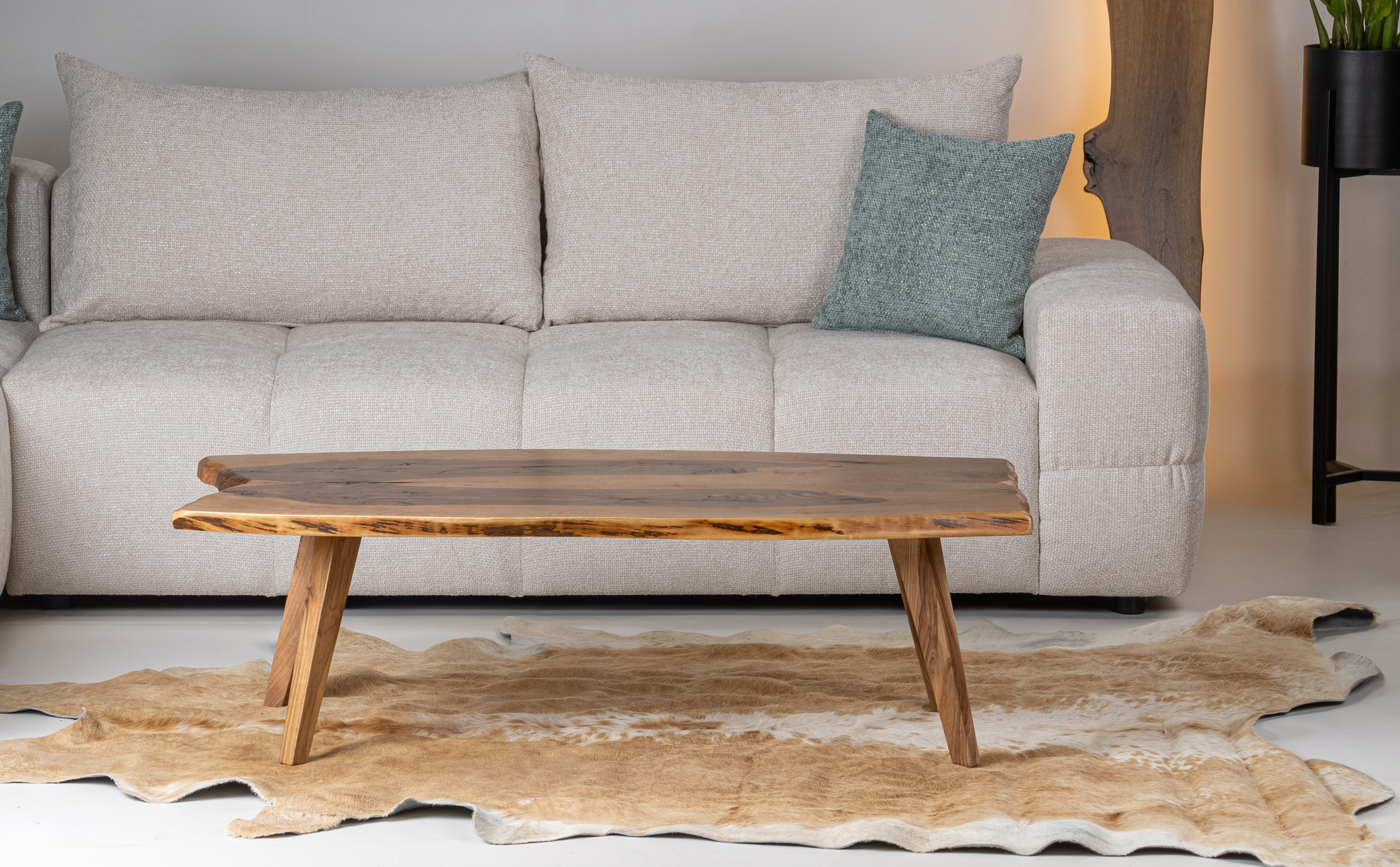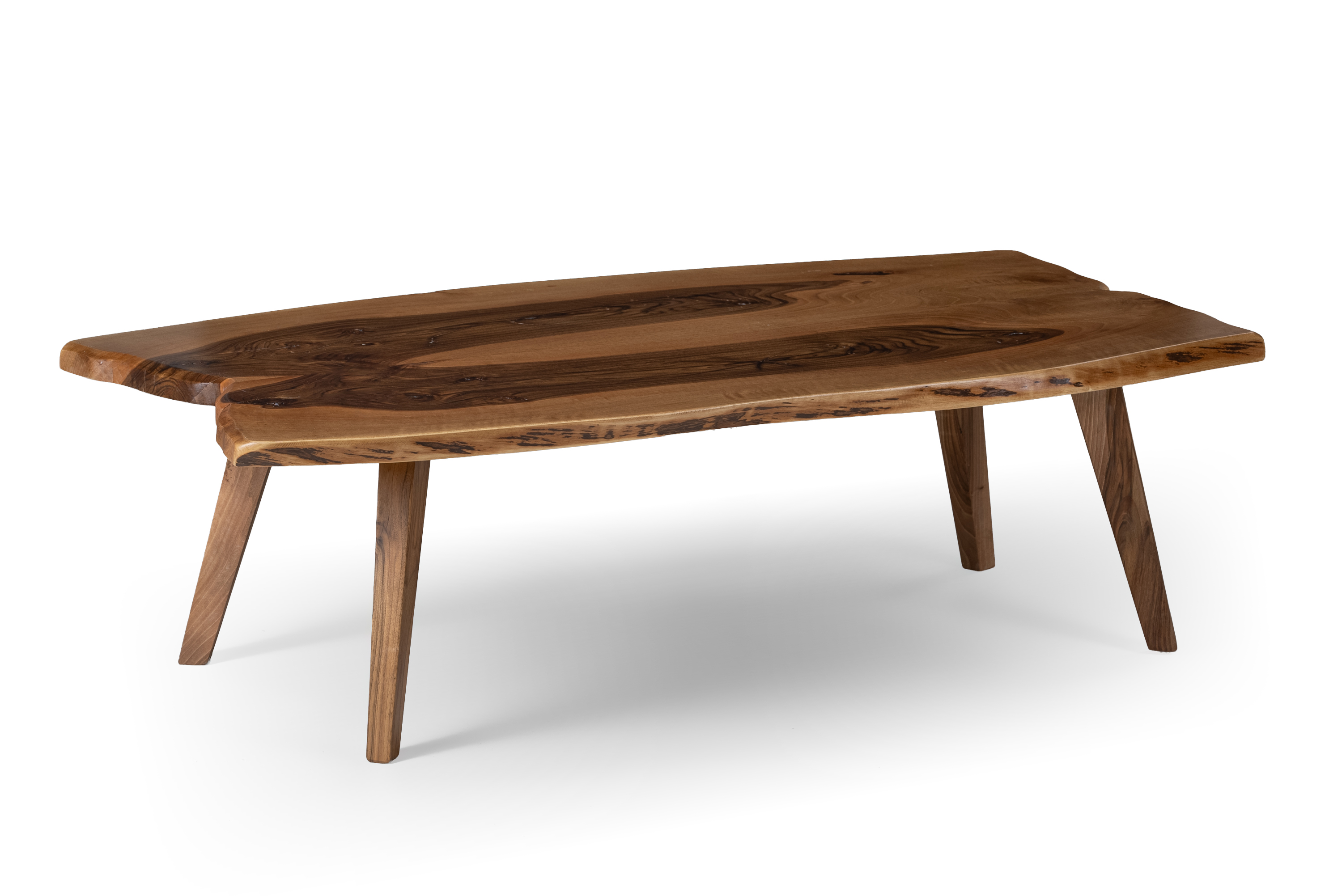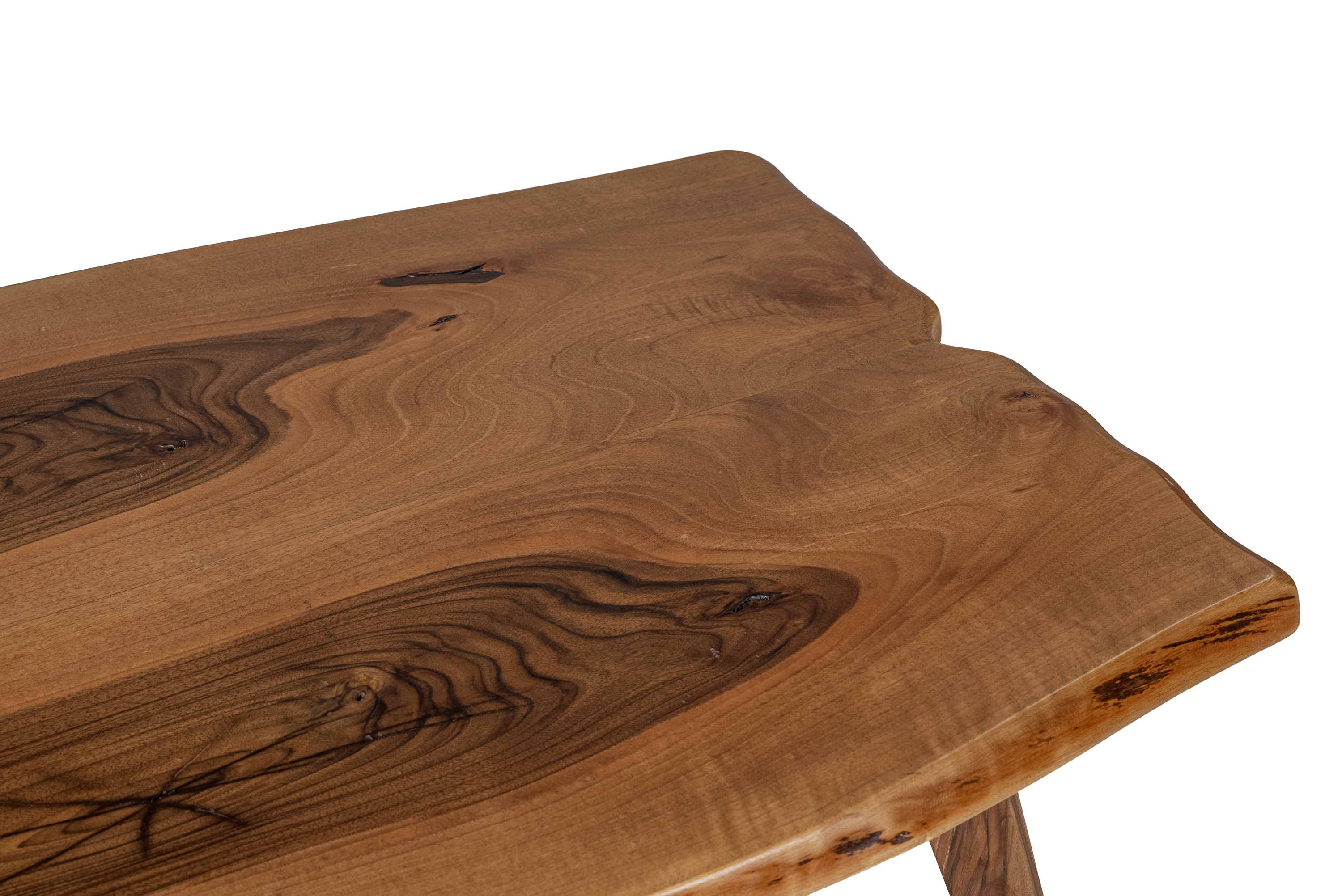 The Masif Walnut 04 coffee table is crafted from premium solid walnut wood, preserving the natural live edge and unique grain patterns of the timber. Each piece is one of a kind, as the organic form of the wood is maintained, creating an authentic and artistic result.