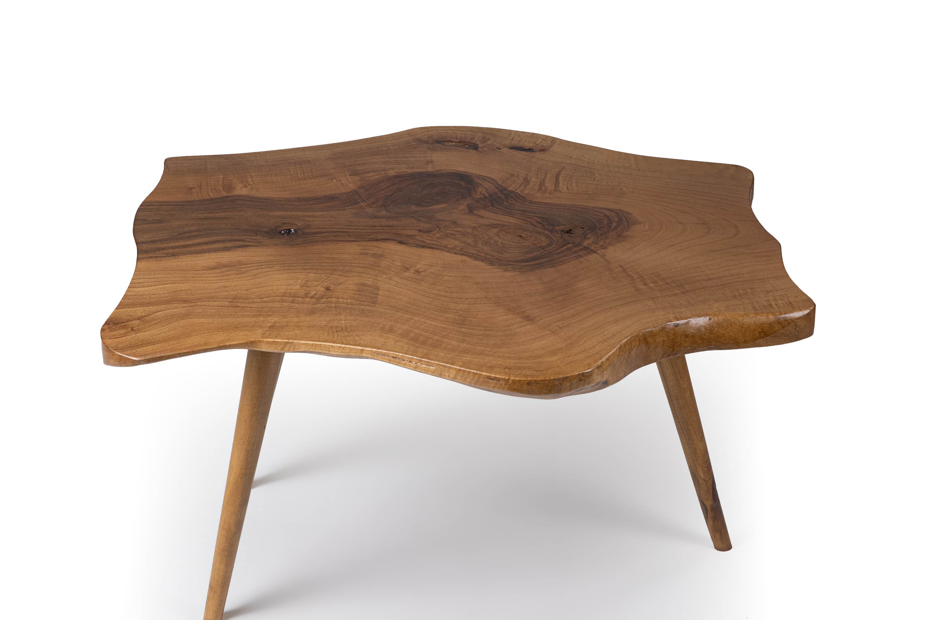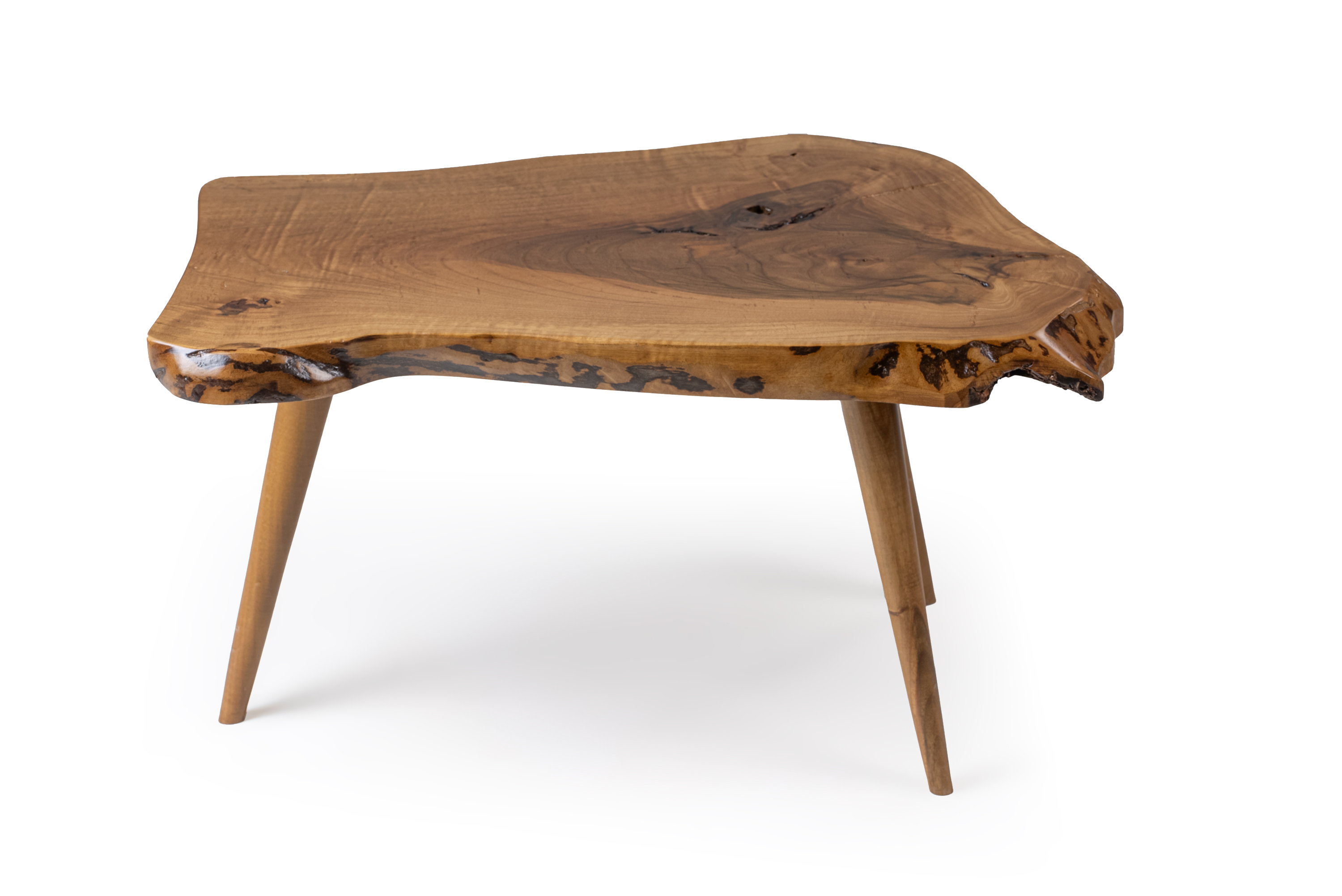 The Masif walnut side table 15 is a unique piece of handcrafted furniture made from solid natural walnut wood. Its surface preserves the authentic organic shape of the tree trunk, featuring natural grains, knots and curves that make every piece truly one of a kind.