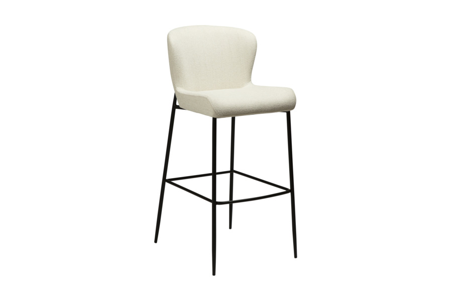 The GLAM bar stool in simply beige bouclé fabric offers a clean and sophisticated aesthetic, ideal for modern and minimal interiors.