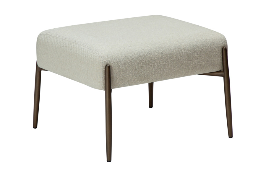 Upholstered in bouclé fabric in a warm pebble earth tone, it brings a natural and cozy feel while complementing the GLAM lounge chairs perfectly.