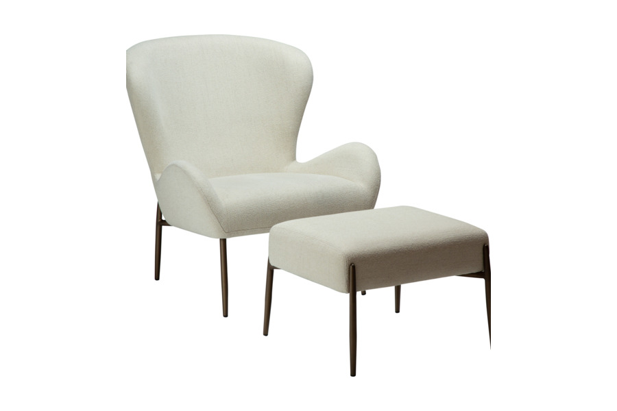 GLAM Bone white Bouclé Lounge Chair Low Back