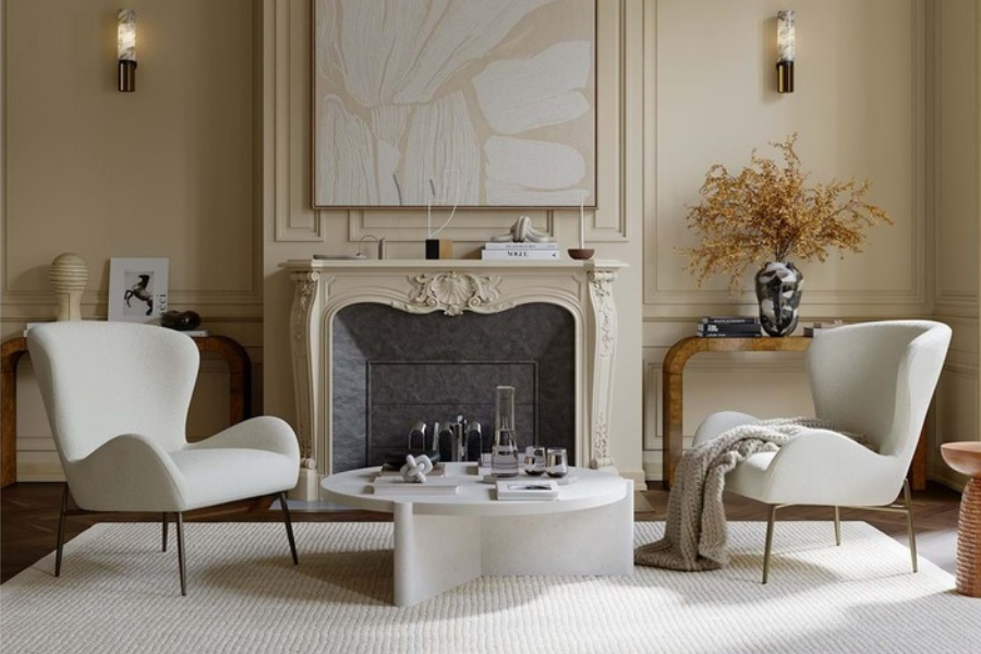 The GLAM bone white bouclé lounge chair with low back design offers a perfect balance of comfort and elegance, ideal for modern living spaces.