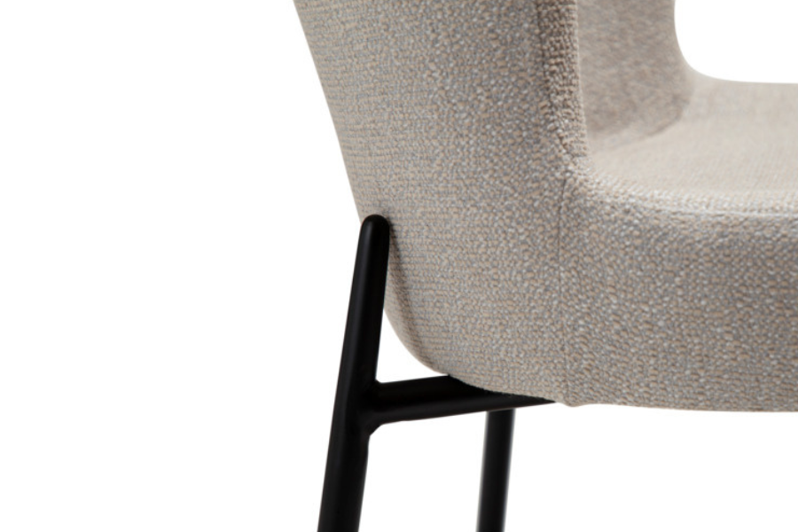 The bouclé upholstery provides a rich texture and soft feel, while the cashmere tone adds warmth and sophistication, making it easy to combine with various interior styles.