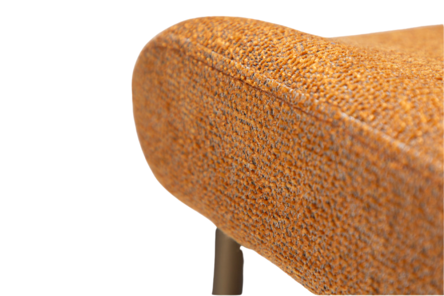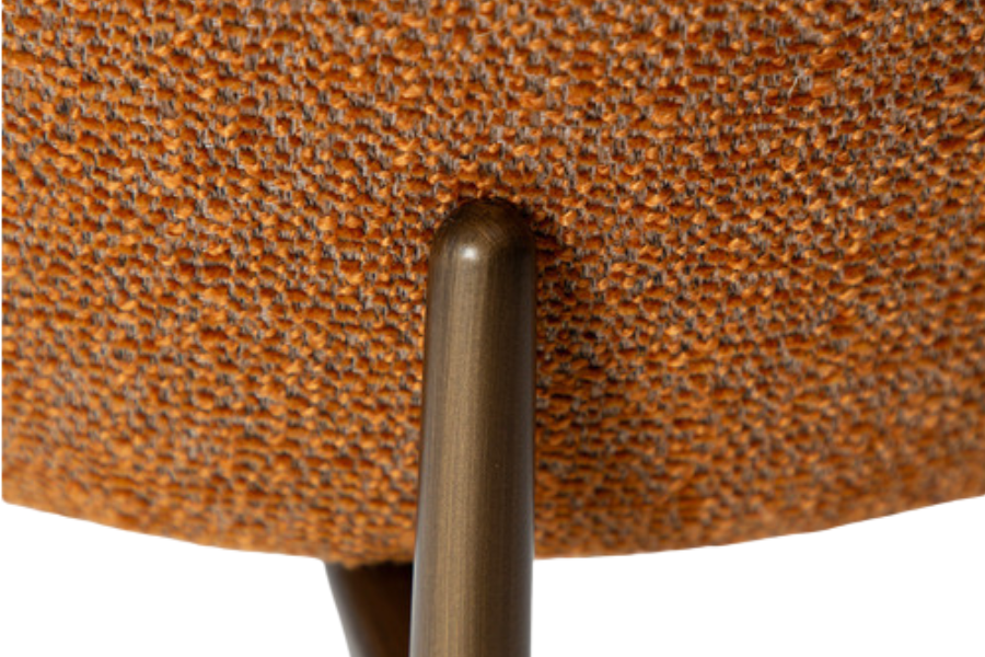 The GLAM dining chair in pumpkin spice bouclé fabric with antique metal legs is a bold and stylish choice, designed to bring warmth and personality into any dining space.