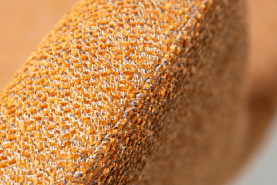 The bouclé upholstery offers a rich texture, while the pumpkin spice tone—a blend of warm orange and earthy hues—creates a cozy yet modern aesthetic. It works perfectly as an accent piece in neutral interiors.