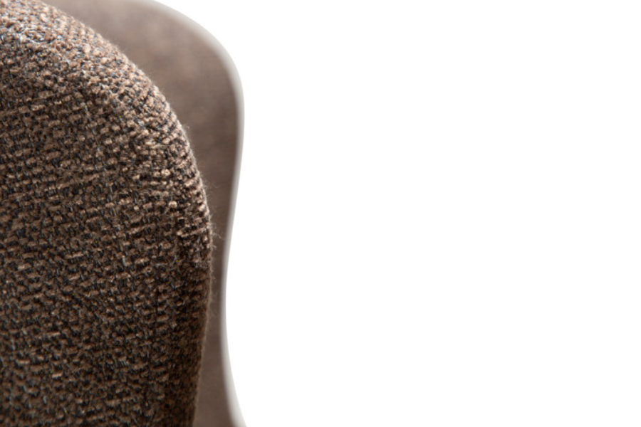 The GLAM swivel dining chair in major brown bouclé fabric combines strong character with modern functionality, making it a perfect fit for contemporary interiors.
