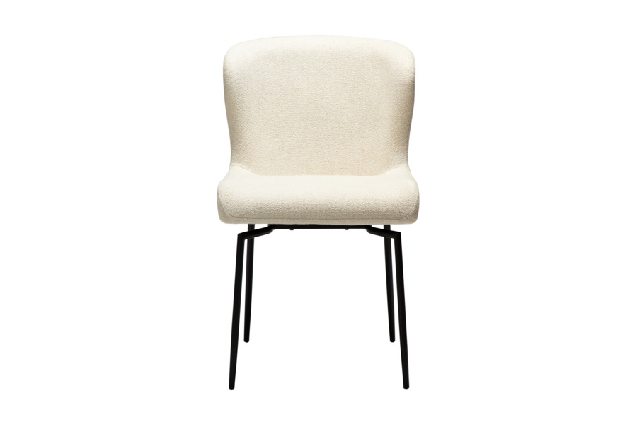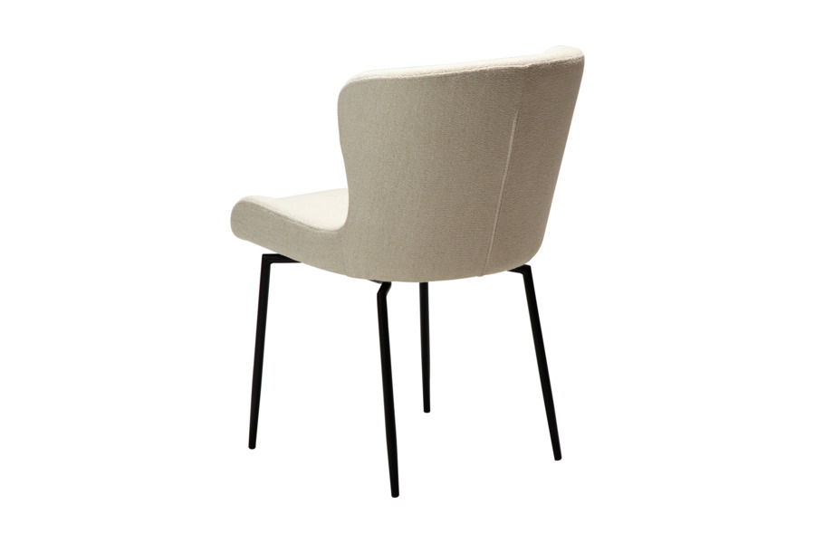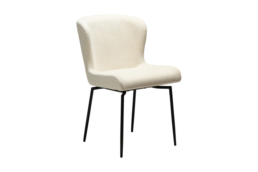 The GLAM swivel dining chair in simply beige bouclé fabric combines minimal elegance with enhanced functionality, making it a versatile choice for modern interiors.