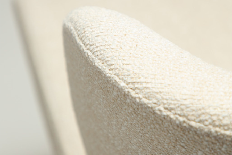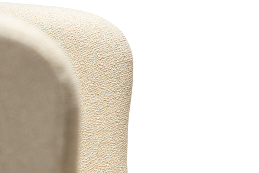 The bouclé upholstery offers a rich texture, while the light beige tone creates a clean and refined look that blends effortlessly into various design styles.