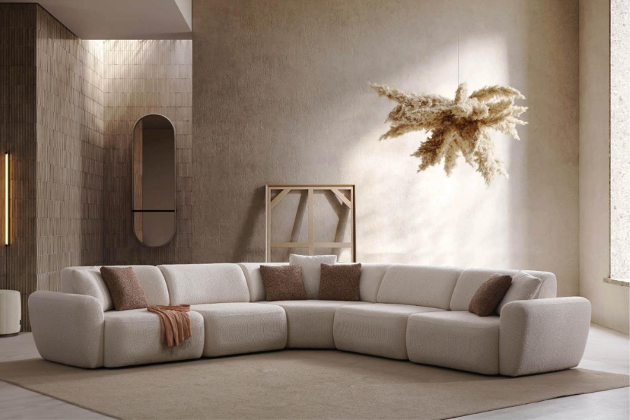 The Gucci corner sofa stands out for its contemporary design and soft, rounded lines that create a warm and relaxing atmosphere in the living space.