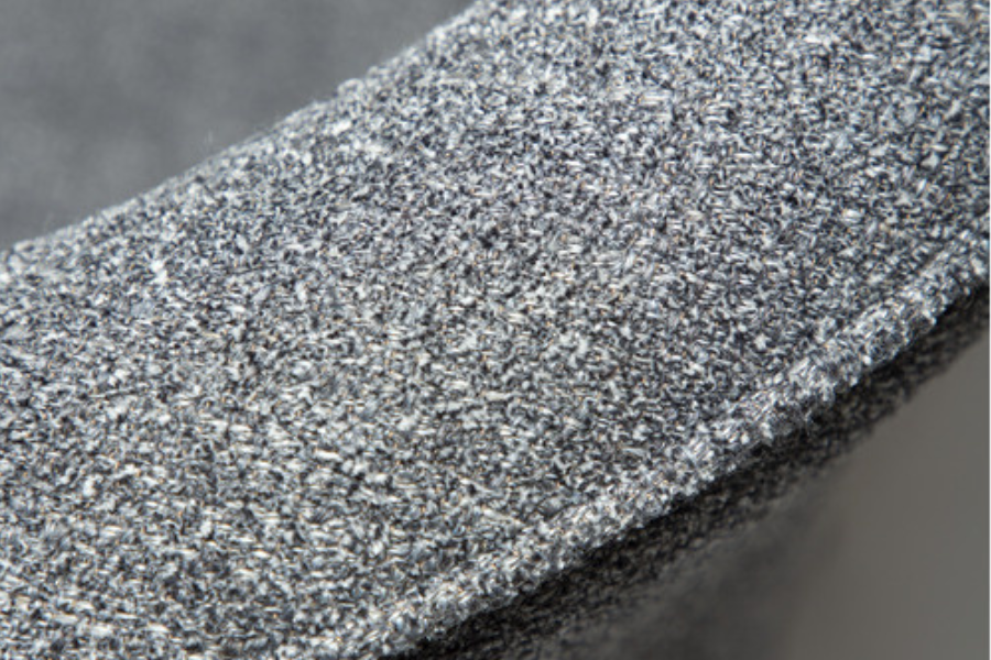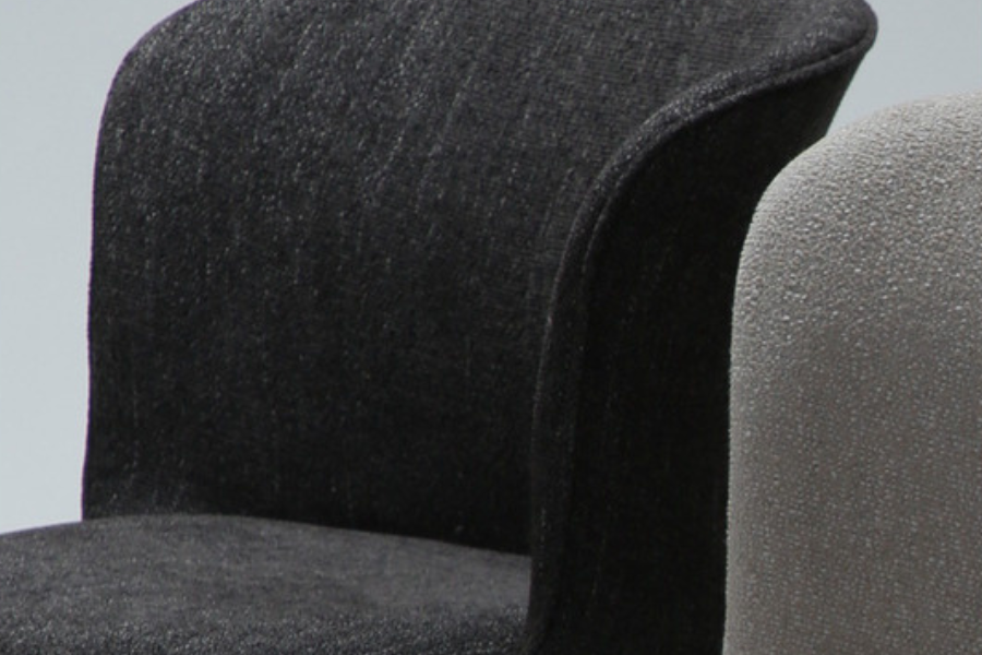 Upholstered in bouclé fabric in the Pebble Grey shade, the chair introduces texture and subtle sophistication. The tactile fabric surface enhances the aesthetic depth of the design while maintaining a warm and inviting appearance.