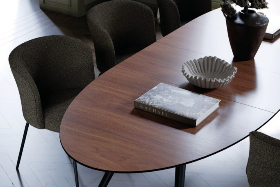 The seat features soft padding with pocket springs, offering superior comfort and proper weight distribution. This construction provides durability and long-lasting support, ensuring many comfortable hours around the table.