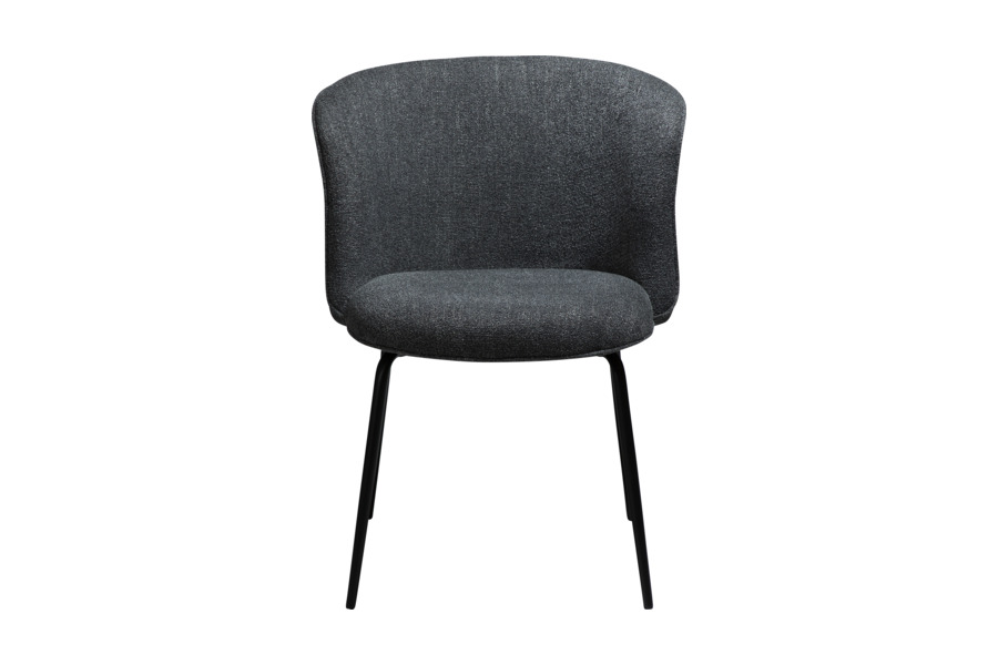 The black metal legs provide stability and a sleek contemporary contrast to the textured upholstery. The Bliss Pebble Grey dining chair is ideal for modern dining rooms as well as stylish hospitality environments.