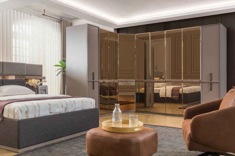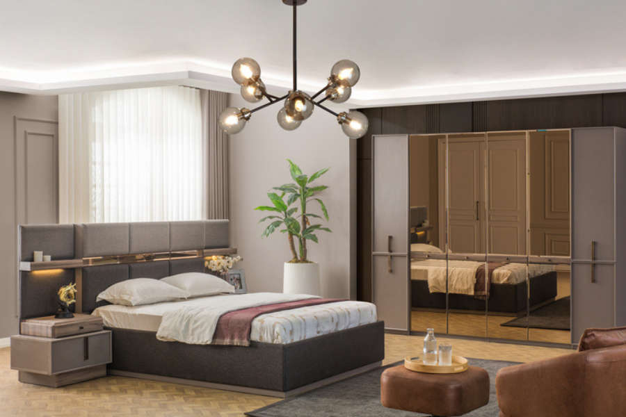 The Atlas Upholstered Bed is a contemporary furniture piece designed for bedrooms that combine comfort, elegance, and modern aesthetics. Its stylish upholstered headboard creates a warm and sophisticated atmosphere that enhances the overall interior design of the bedroom.