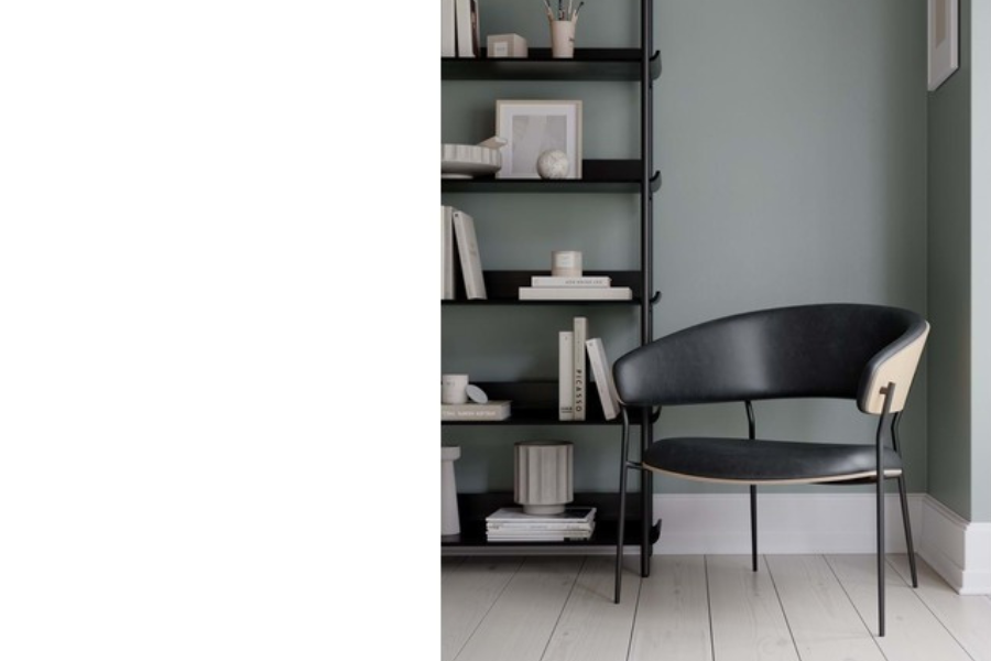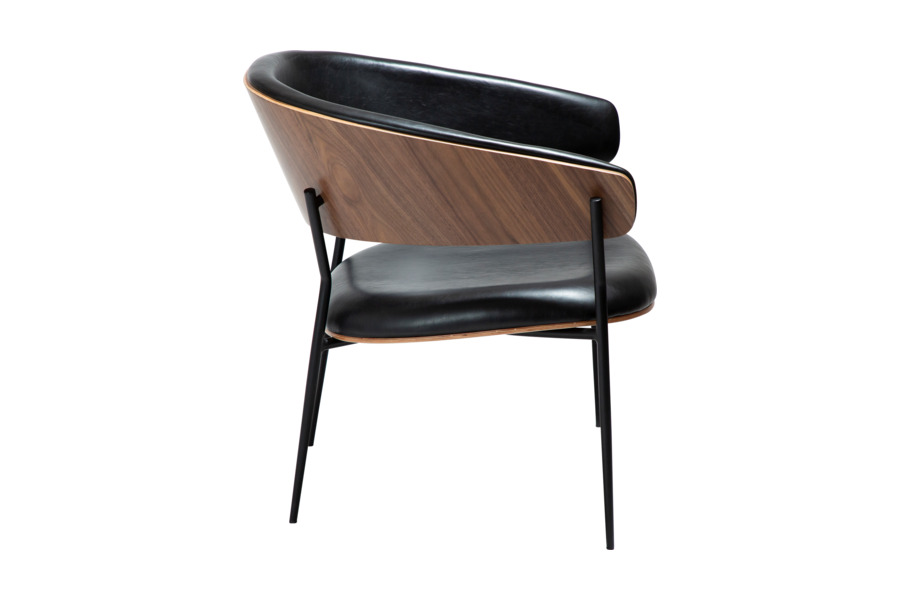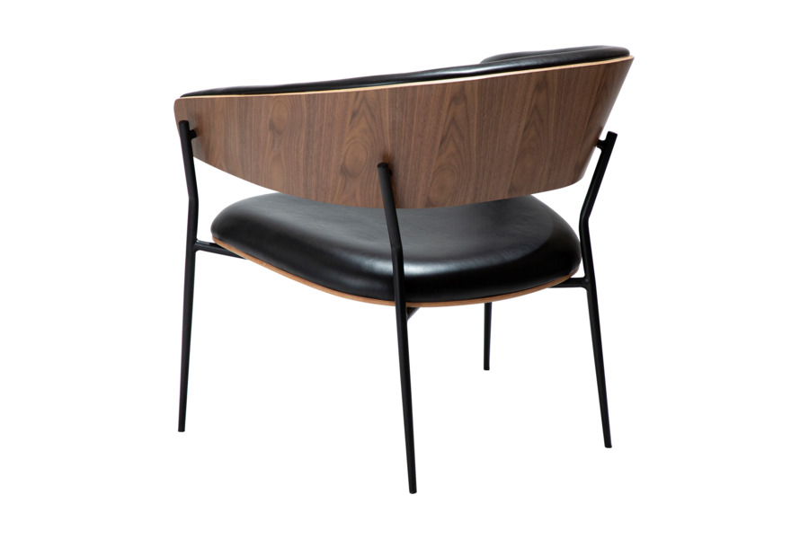 The Crib lounge chair Vintage Black Leather / Walnut Veneer, designed by Georgsen, blends mid-century elegance with a relaxed contemporary feel. The curved walnut veneer backrest adds warmth and natural texture, while the inner upholstery in vintage black leather introduces a refined and sophisticated contrast.