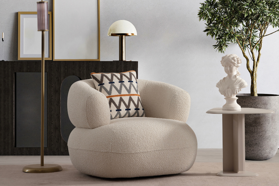 Glamour Armchair combines contemporary aesthetics with soft, rounded shapes, creating an elegant and distinctive piece for the living space. Its curved design brings harmony and balance to the room.