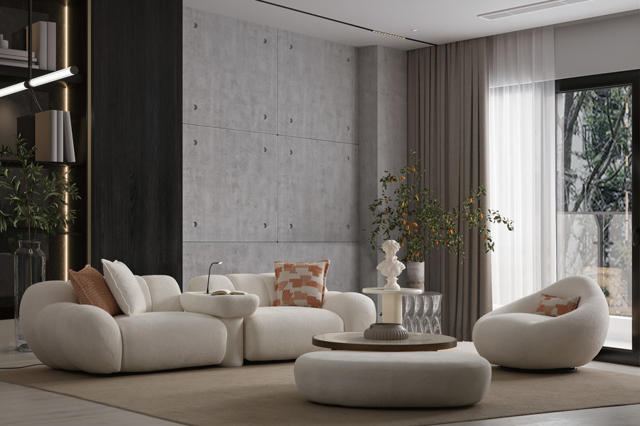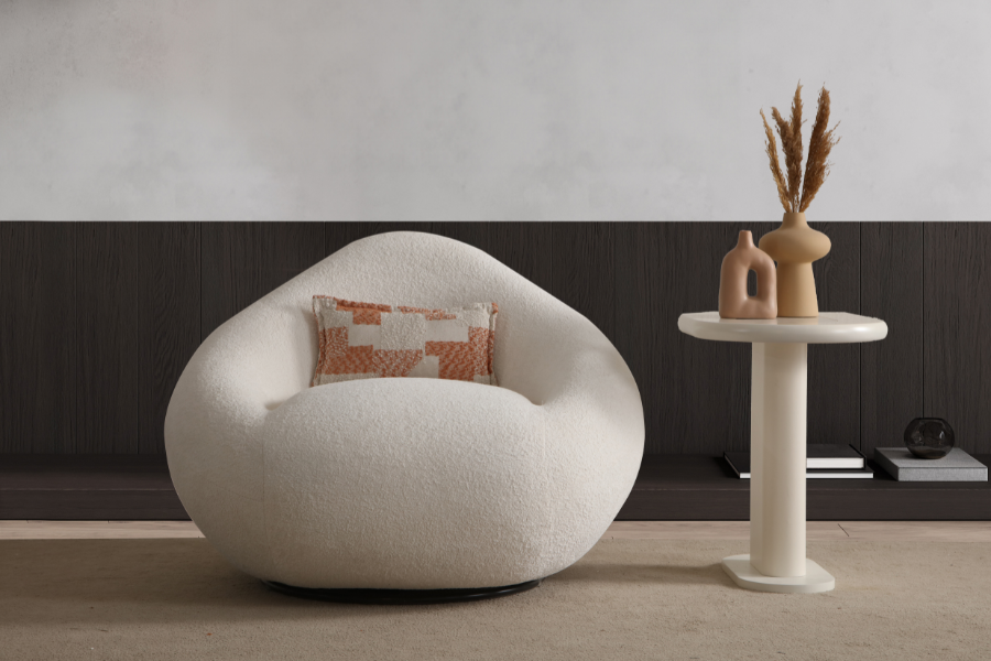 Molivo Armchair stands out with its organic design and soft curves, creating a modern and inviting seating experience. Its shape embraces the body, offering a sense of relaxation and comfort.