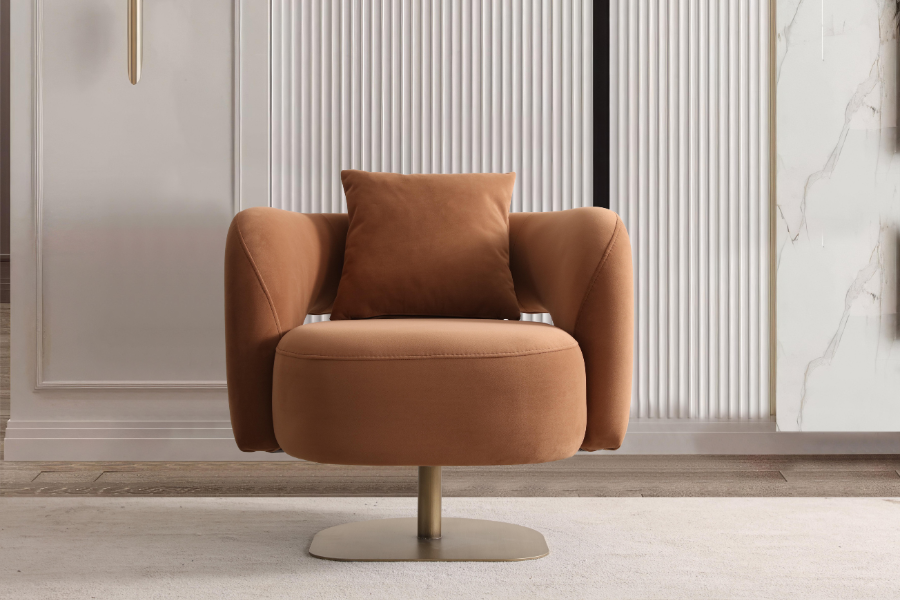 Orva Armchair stands out with its contemporary and elegant design, making it an ideal choice for modern living spaces. Its rounded lines and minimal aesthetic create a balanced look that fits effortlessly into any interior.