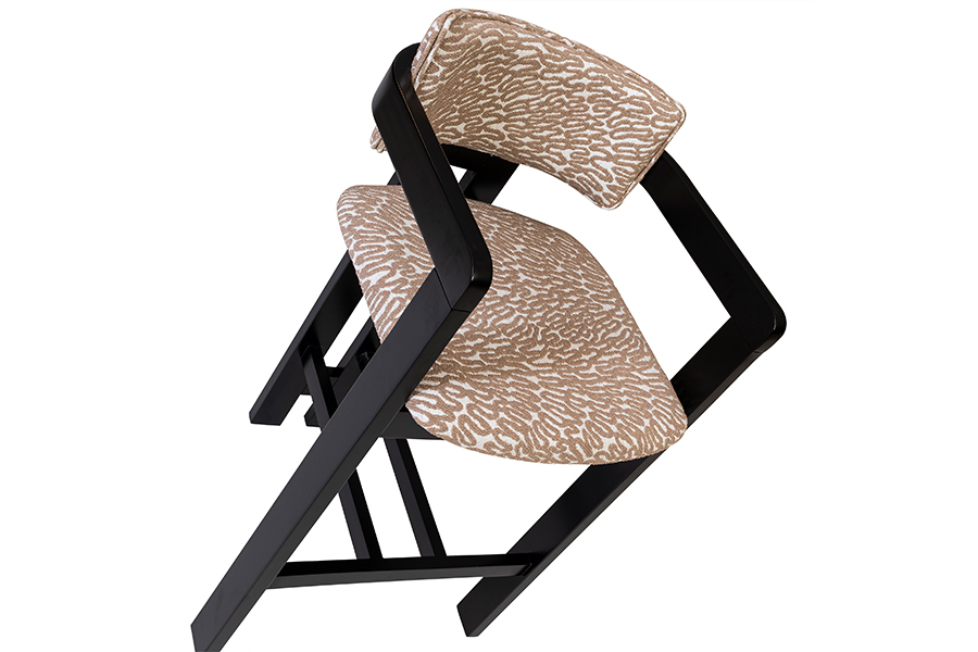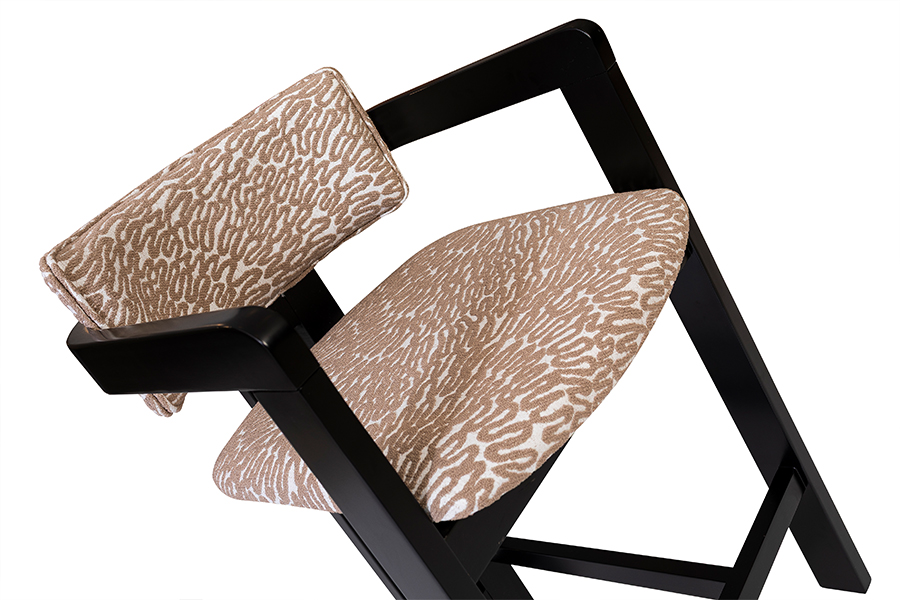 It features an upholstered seat and backrest with high-quality fabric, providing comfortable support and a pleasant seating experience. The backrest enhances ergonomics, making it suitable for extended use.