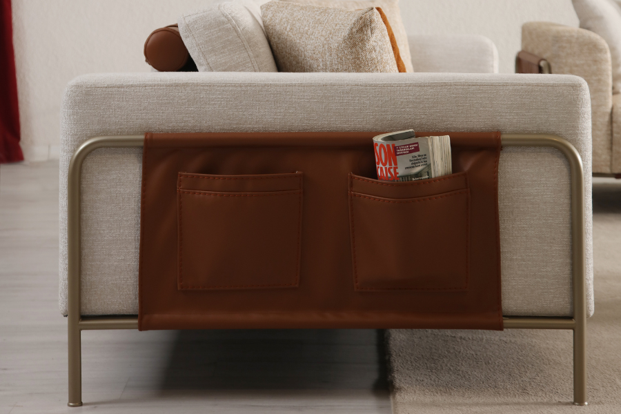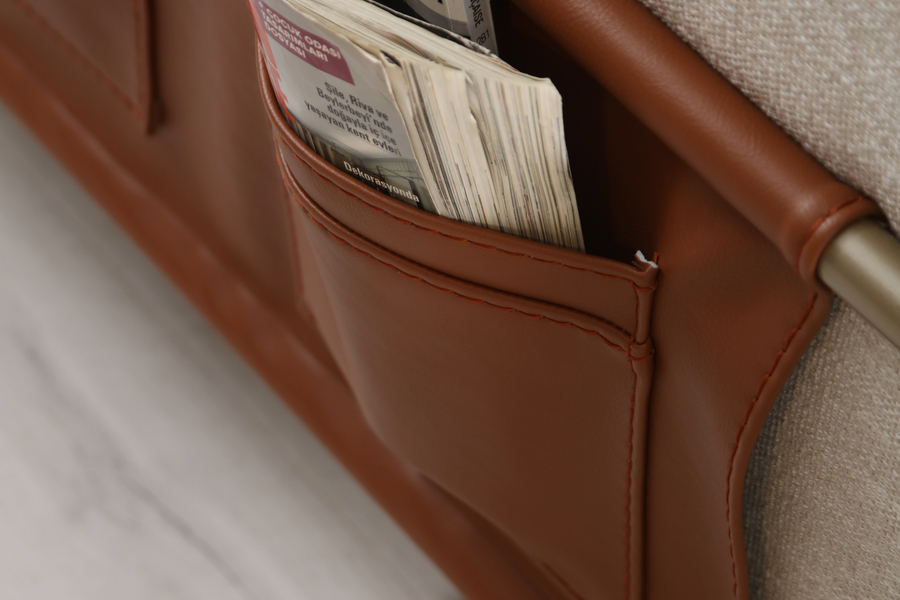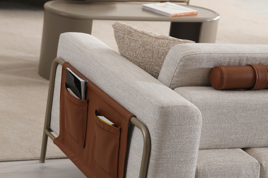 Practical side elements add functionality, offering storage space for small items.