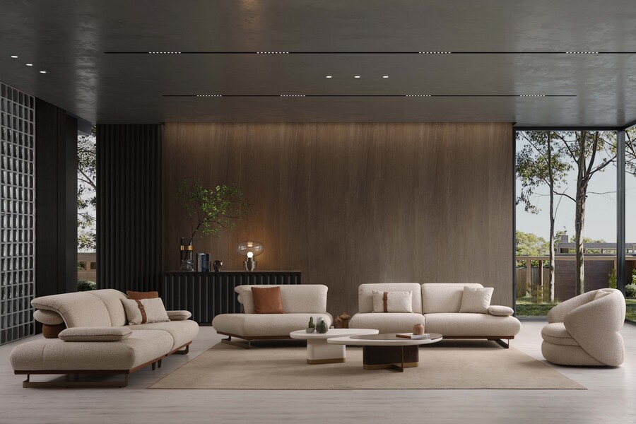 Soft curves and high-quality fabric upholstery create a warm and inviting feel, perfect for everyday use.