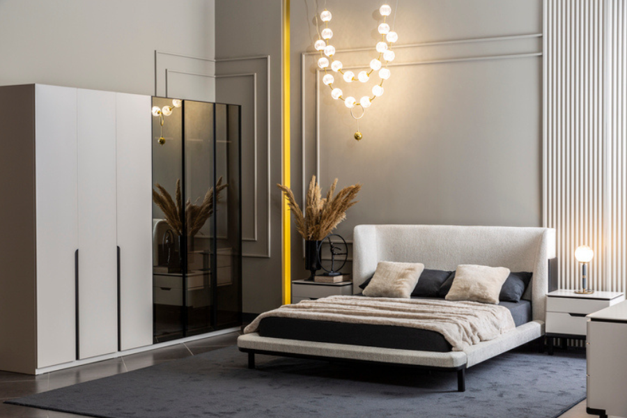Its modern design allows it to blend seamlessly with contemporary or minimalist interiors, making it easy to combine with matching bedside tables, dressers, and wardrobes.